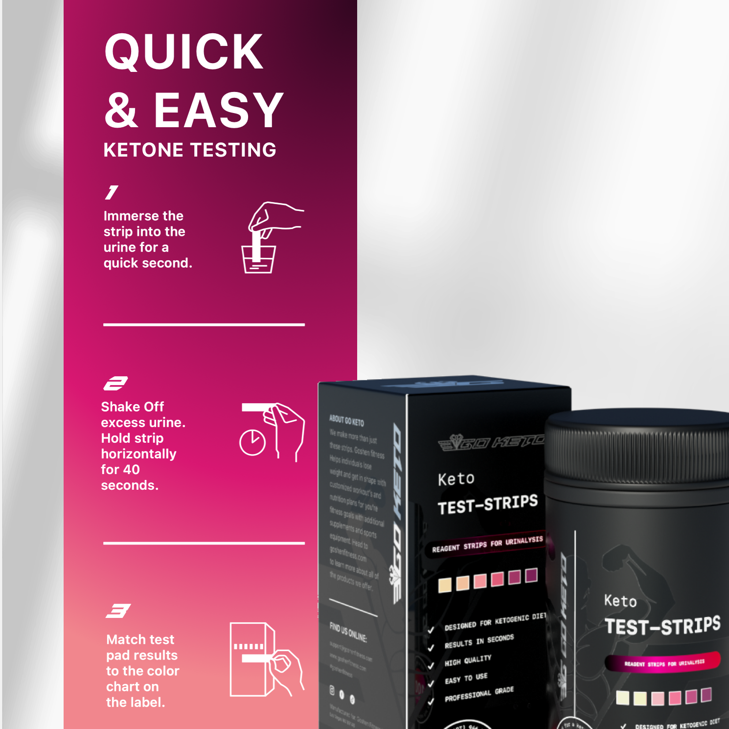 Our high-quality test strips provide precise results, empowering you to make informed decisions about your keto journey. Whether you're just starting out or a seasoned keto pro, knowing your ketosis status is crucial for achieving optimal results. Convenient and affordable, these urine test strips offer a hassle-free way to monitor your ketone levels and make necessary adjustments to your diet. The more you measure, the more you know – take control of your keto experience with GoKeto Keto Test Strips!